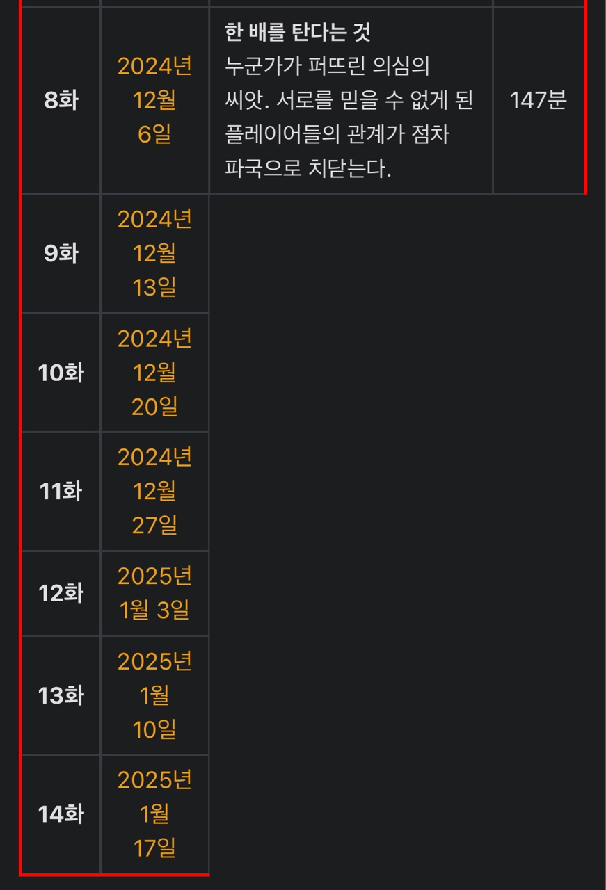 推 wonwoo : 查韓國官網全部共14集 接下來每週一集…悲痛… 12/06 23:14