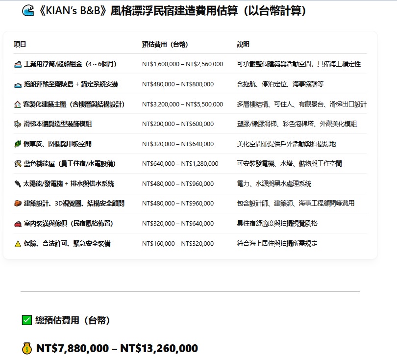 推 AirOctopus : 還要租大型平底船當地基4-5個月,離島運輸不方便、 04/10 11:06