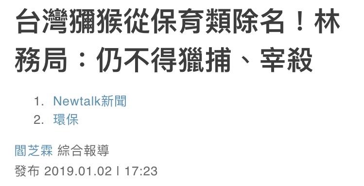推 kingha : 獼猴早就不是保育類...更新一下資訊 06/07 22:30