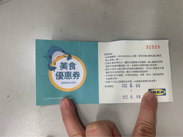 物品名稱:IKEA美食優惠券(120以上主食送10粒丸類套餐或點心套餐)