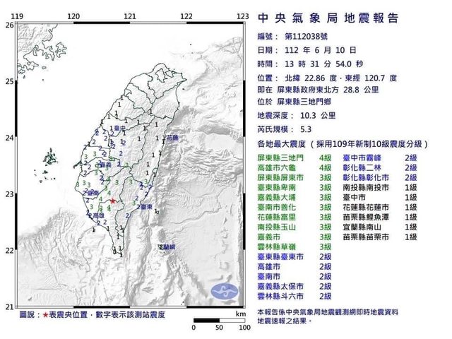 推 jganet : 更正昨天山地門有淺層地震。06/10 13:41