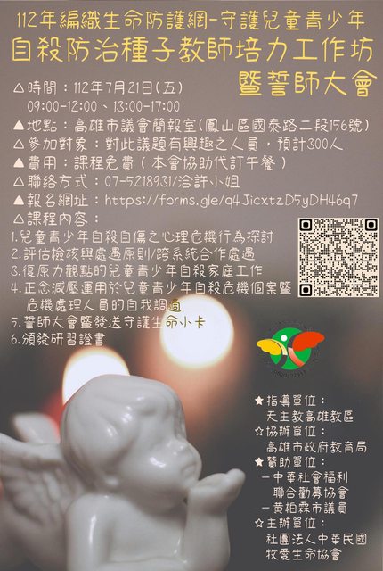 【112年編織生命防護網 守護兒童青少年-自殺防治種子教師培力工作坊暨誓師大會】