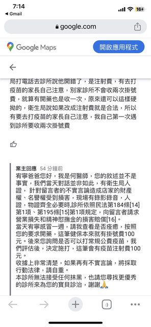 : 何醫師有留言回覆,但和診所來電內容不一致,說我是不實指控,有收二次掛號費,