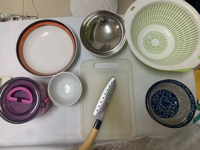 簡單鍋碗瓢盆等,有乾淨有些有使用痕跡