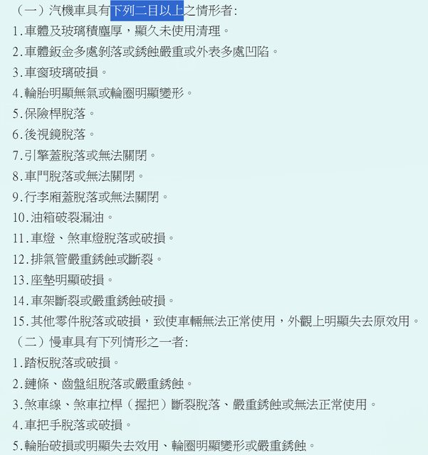 另外各縣市還會定一個最細的辦理來判定是否屬於廢棄車