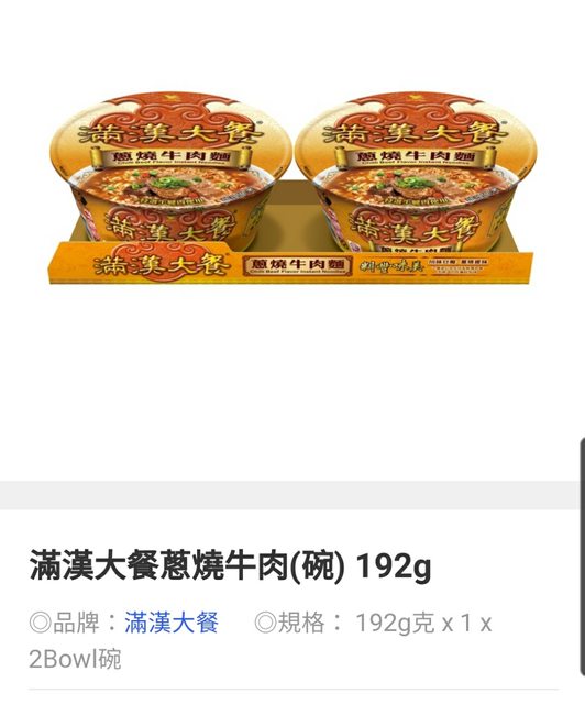 欲換物品:滿漢大餐蔥燒牛肉碗麵 (2碗1組 )
