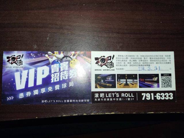 物品2:滾吧保齡球vip招待卷7張