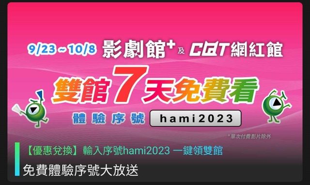 Hami Video影劇館+ C@T網紅館 雙館7天免費看 體驗活動