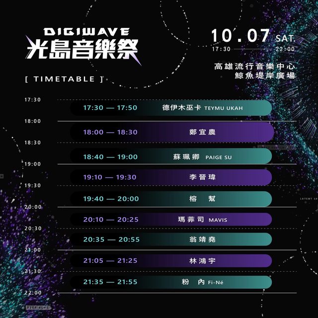 時間| 10/7 (六) ~ 17:30 - 22:00