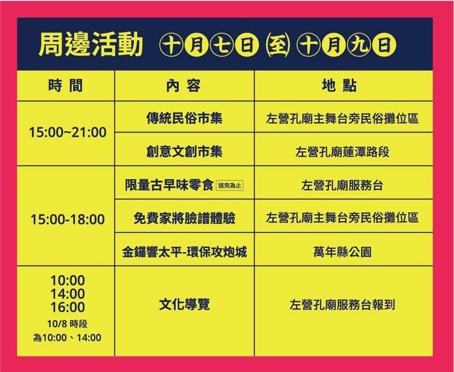 時間| 10/8 (日) ~ 10/9 (一) 10/7 前夜祭