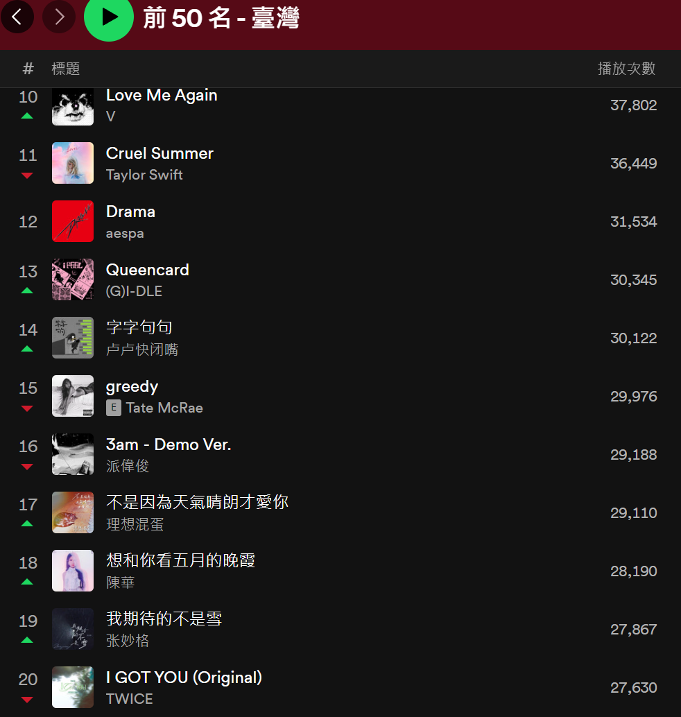 → timwei0626: Spotify三天全球飛榜也叫不錯喔? 218.164.66.82 02/11 23:26