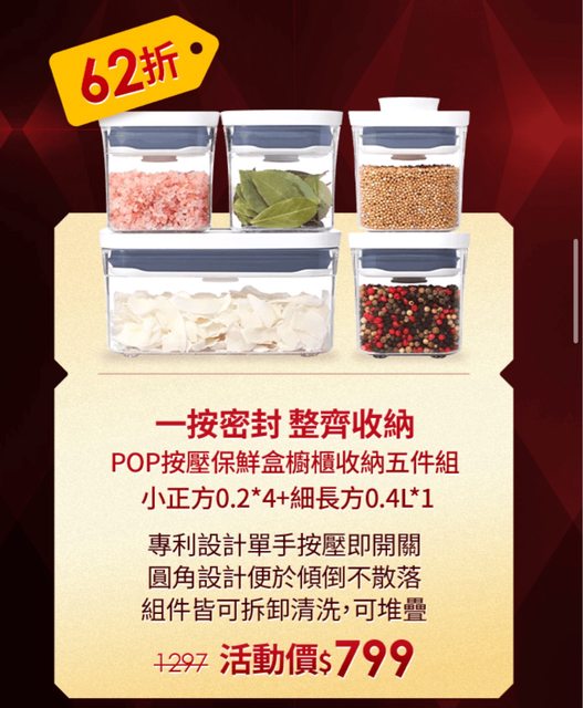POP按壓保鮮盒和櫥櫃收納五件組 $799