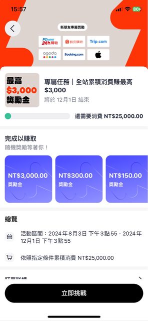 也想問這個任務的意思是指我在指定網站消費到25000就可以回饋3000的意思嗎?