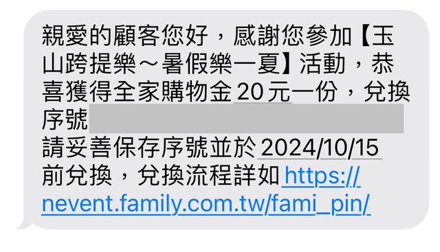 → Kazamatsuri: 話收簡訊 然後輸入進全家APP裡變成紅 36.226.111.75 08/31 19:53