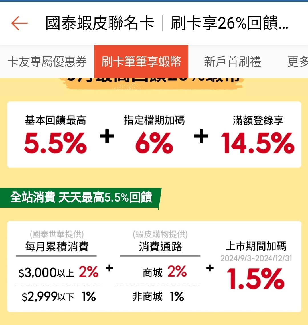 推 ZMTL: 這26%好拿嗎?可以跟其他蝦幣回饋券併用? 60.250.61.214 09/03 18:26