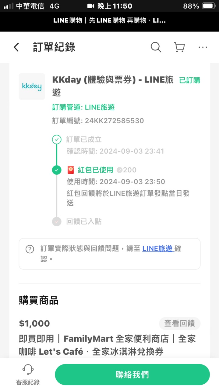 推 stillstands: 我用kkday網頁版,搜尋统一或全家禮 39.10.1.25 09/04 02:39