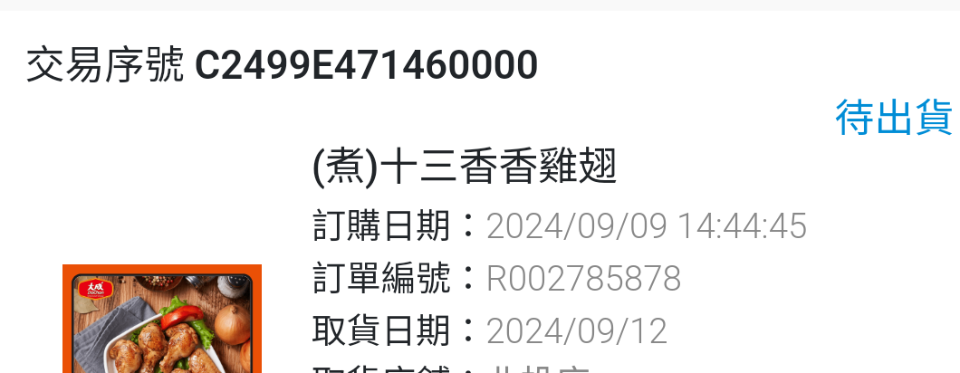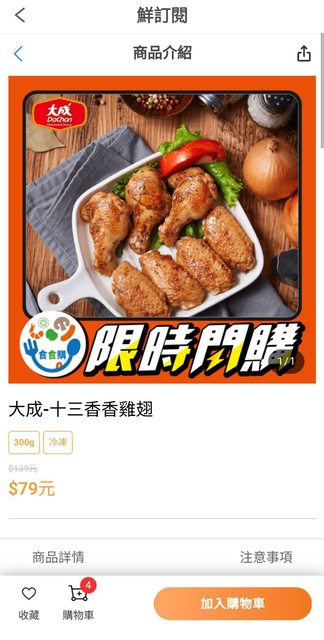 今天9/9的閃購是大成十三香香雞翅300g/$79