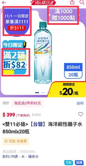 全聯台鹽水又有特價了,最多可以搭配2個折價+1個贈點活動