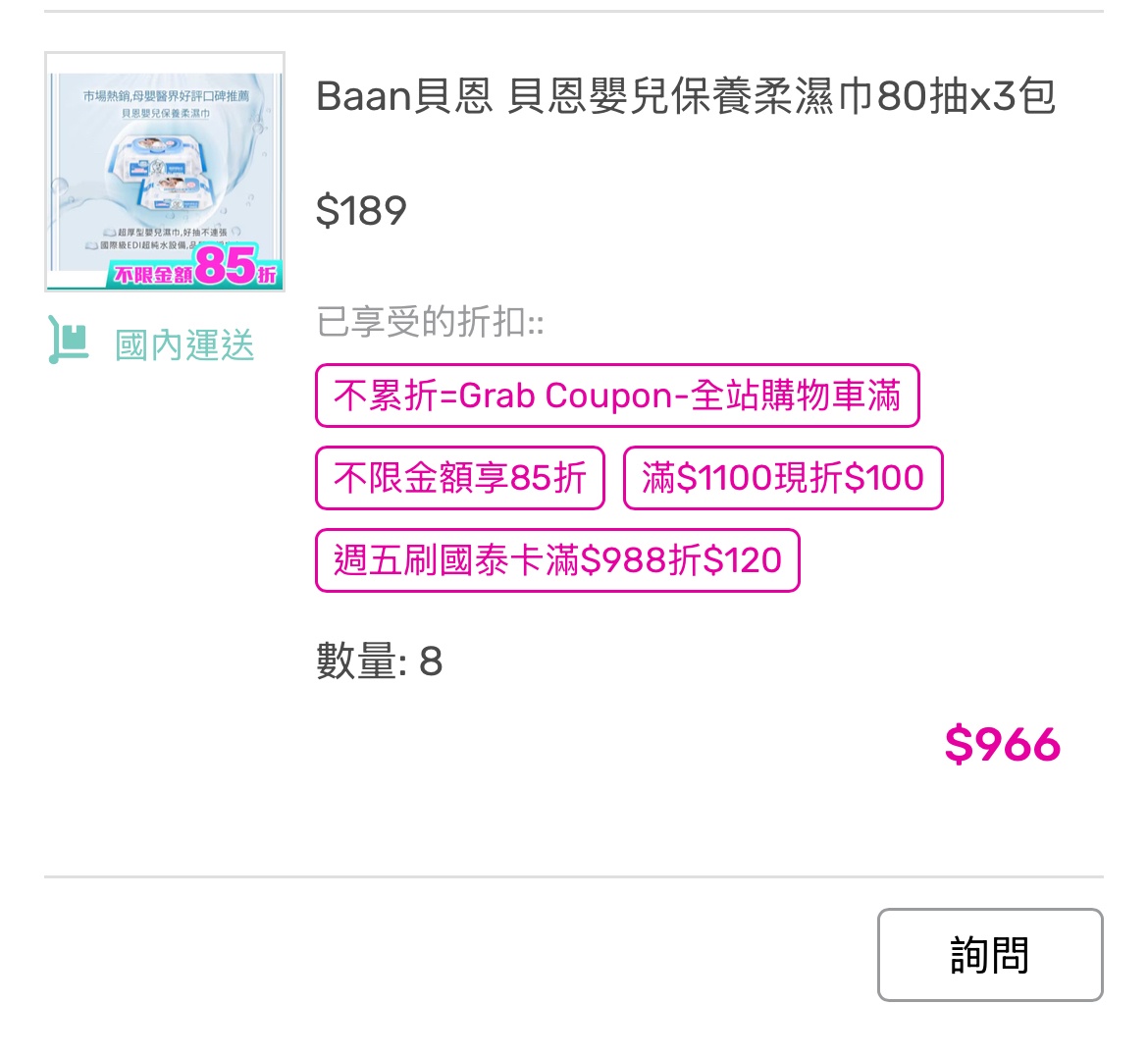 推 ayo0831: 不要選1小時到達的可以買8包 但看評價好 223.137.39.26 11/08 22:23