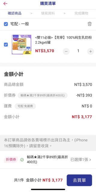 : 剛把我要結帳的克寧放購物車發現