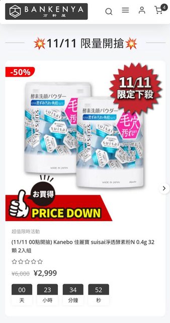 Kanebo 佳麗寶 suisai淨透酵素粉N 0.4g 32顆 2入組 ¥2999