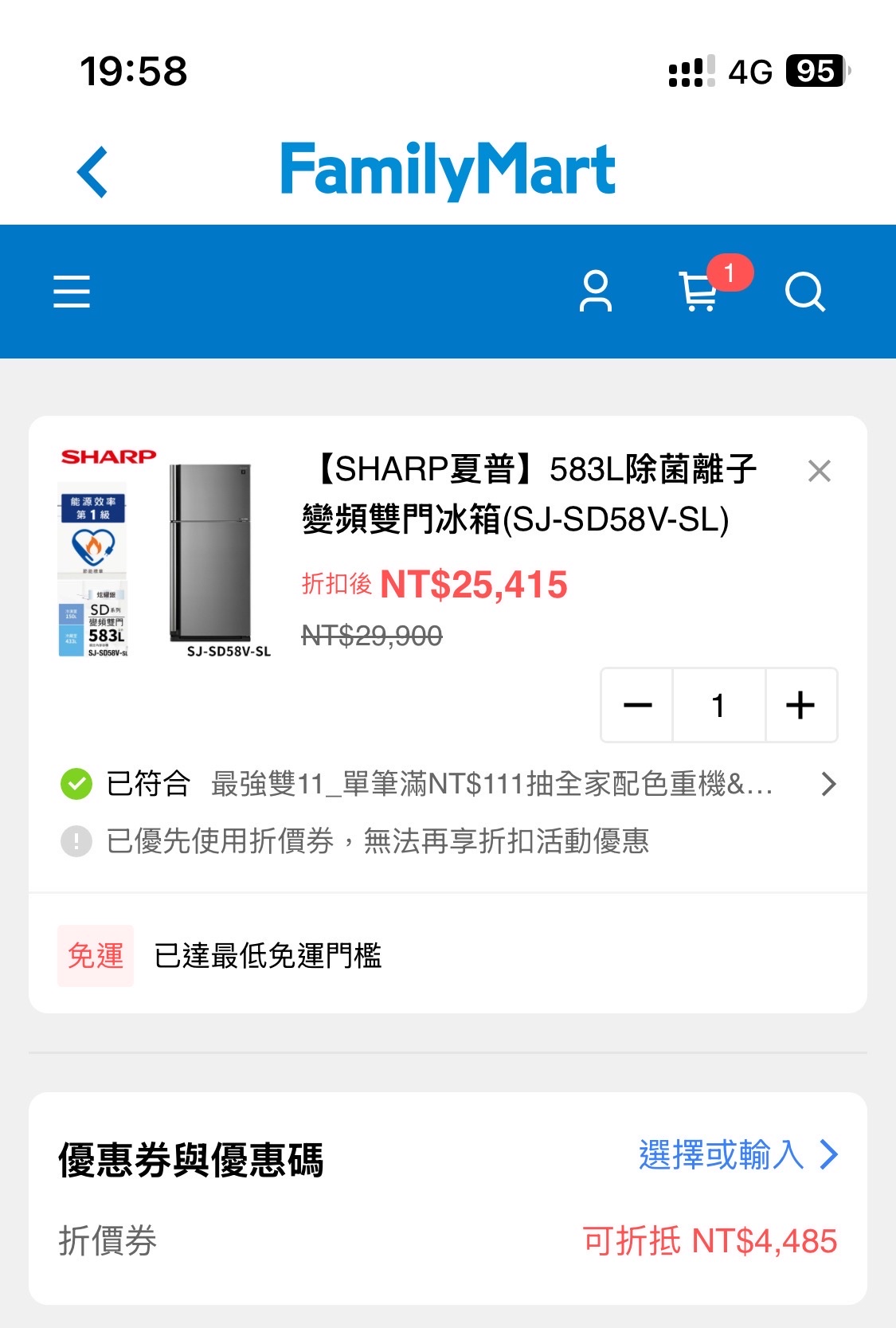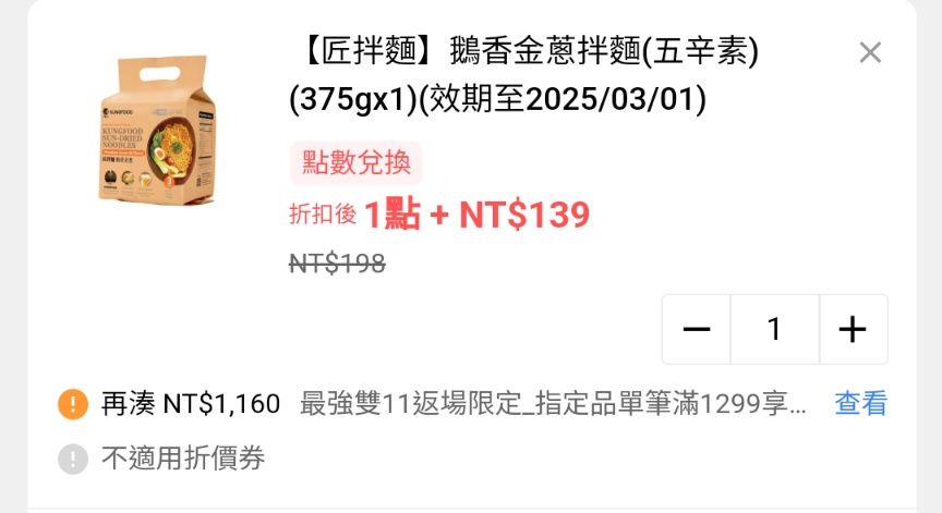 推 bigshiun: 85折買3c會結帳失敗耶 39.15.57.119 11/22 01:59
