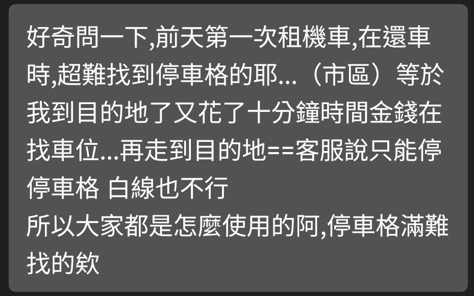 推 lolen: 如果是熱門地區,找白線隨便停就好了,因為 1.171.78.218 11/30 23:45