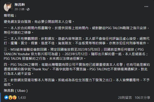 → silentsky555: 都那麼大的戰隊簽約不可能沒有解約條款啊 大家按合 06/01 20:05