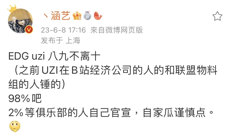 推 TPPlazycow : 不說實力 EDG uzi 真的很有話題。。 06/08 17:30