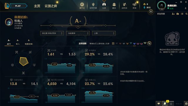 越貼近鑽石勝率越可悲但總括而言保持A-表現就是上分秘訣吧,反正最後20場每場無論輸