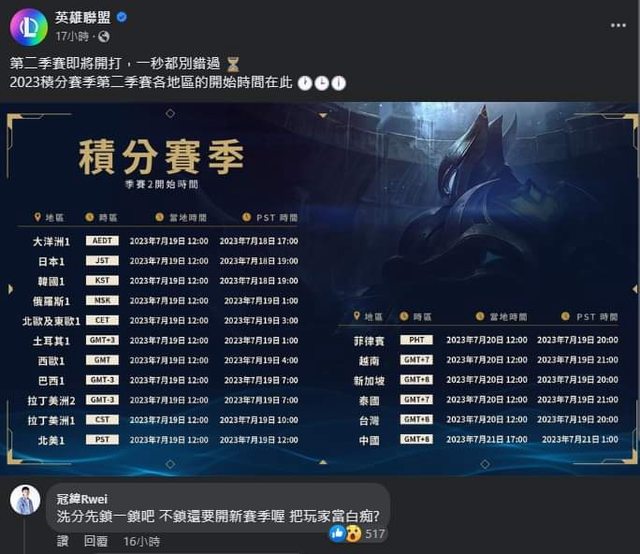 推 s458963 : 算了吧 反正也沒人在意 台灣LOL跟電競就繼續爛下去 06/18 19:58