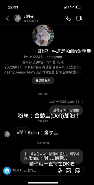 錯字,不是傳錯人,還鼓勵Kellin玩得很好,Kellin也很禮貌地回應了粉絲的鼓勵
