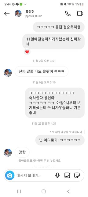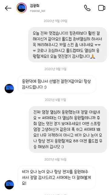 粉絲給哥的DM鼓勵,哥謝謝粉絲的支持,也謝謝粉絲不畏風雨(雨與雪)來加油