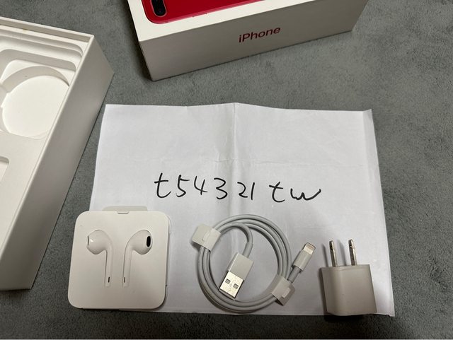 iPhone 8 Plus 原廠的線控耳機、USB充電線、USB充電頭
