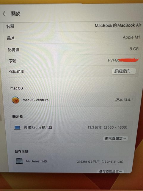 標題[販售] 全國 二手 MacbookAir M1 8G/256G 太空灰