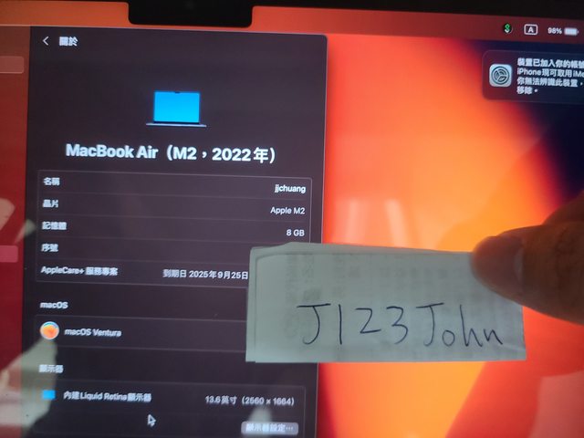 標題[販售] 全國 二手MacBook Air M2 8G 256G 午夜色