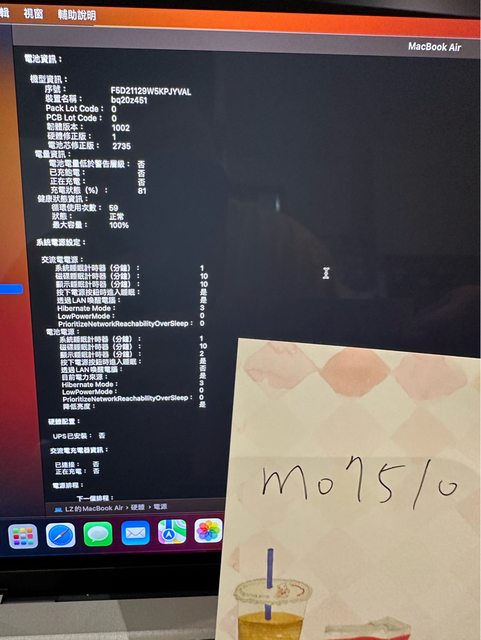 極少使用9.5成新、電池循環次數59次、電池最大容量100%、外觀無傷、螢幕正常、鍵盤