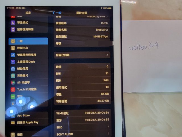 [型號] ipad air2