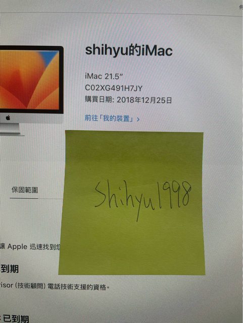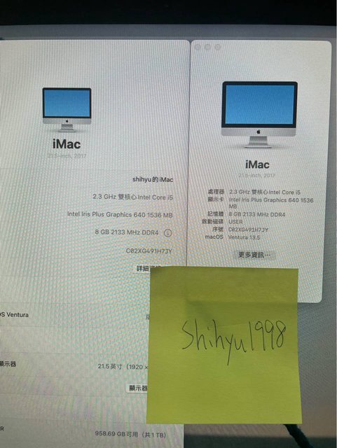 標題[販售] 新北 imac 21.5 i5/2.3GHz/8G/1TB A1418