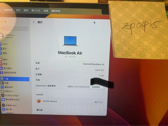 [型號] MacBook Air 13 M2 A2681