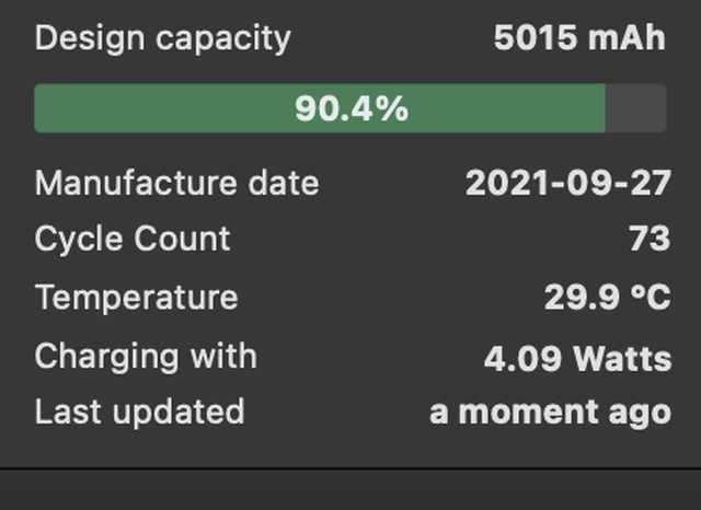 電池健康度90% 循環73