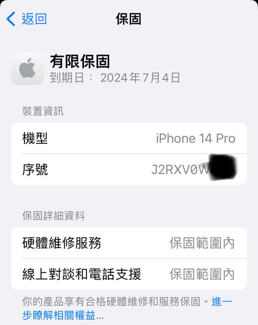 可憑商品序號至 Apple官網查詢 https://apple.co/3l6By0R