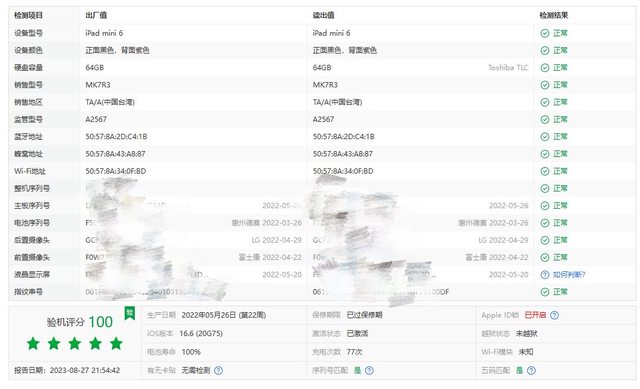 標題[販售] 新竹 iPad mini 6 64g 紫 電池100