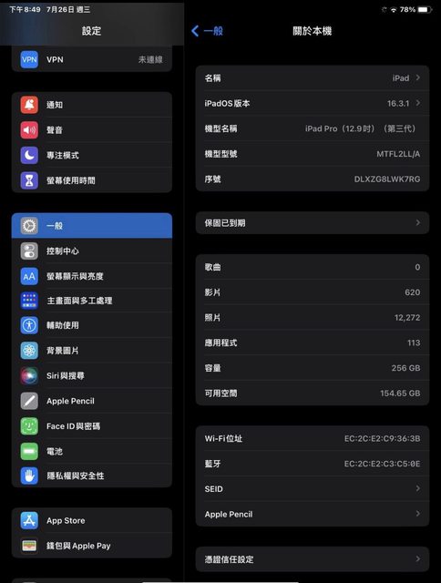 1.iPad Pro 12.9 3th(2019 十月購入)