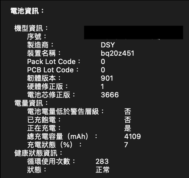 電池循環:283次