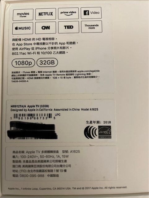 [型號] Apple TV HD (A1625) 32G