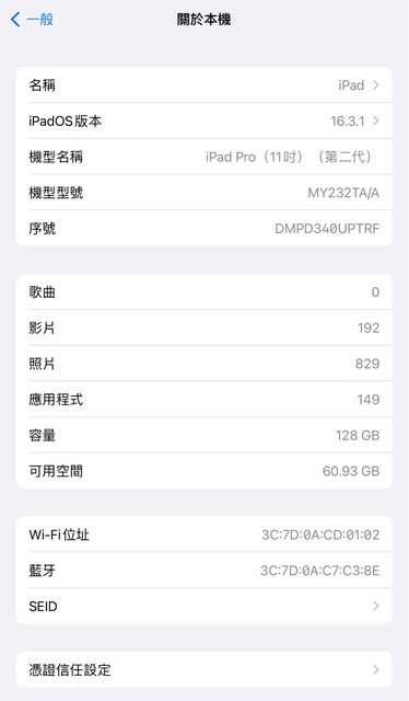 標題[販售] 台中iPad Pro11吋 A12Z 128g 灰