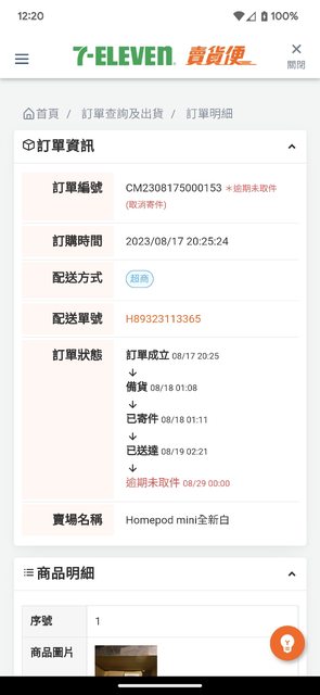 7-11收件門市:櫻花門市(407台中市西屯區櫻花路111號)