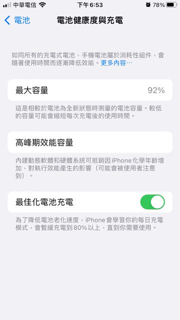 電池健康度仍有92%