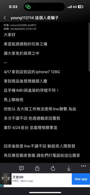 補充我搜尋到的板友發表的詐騙文截圖